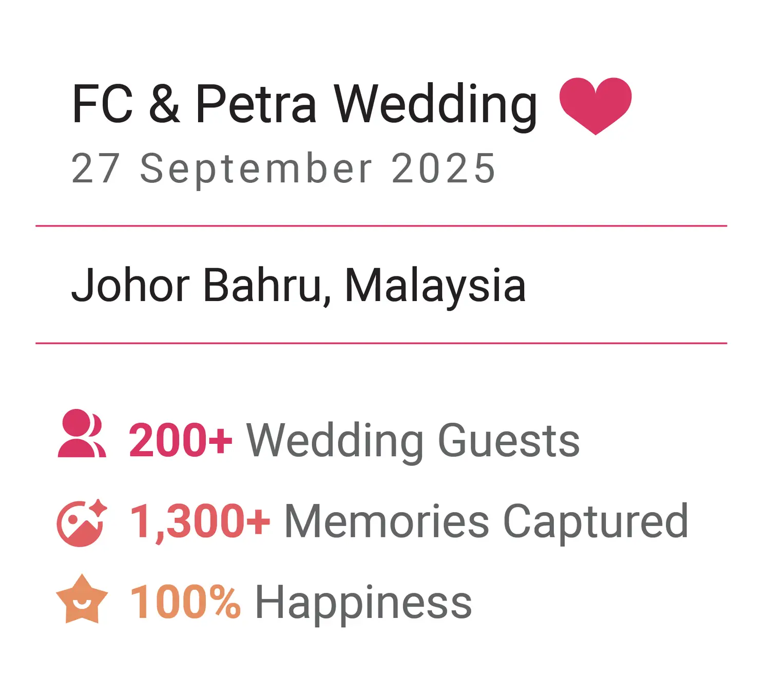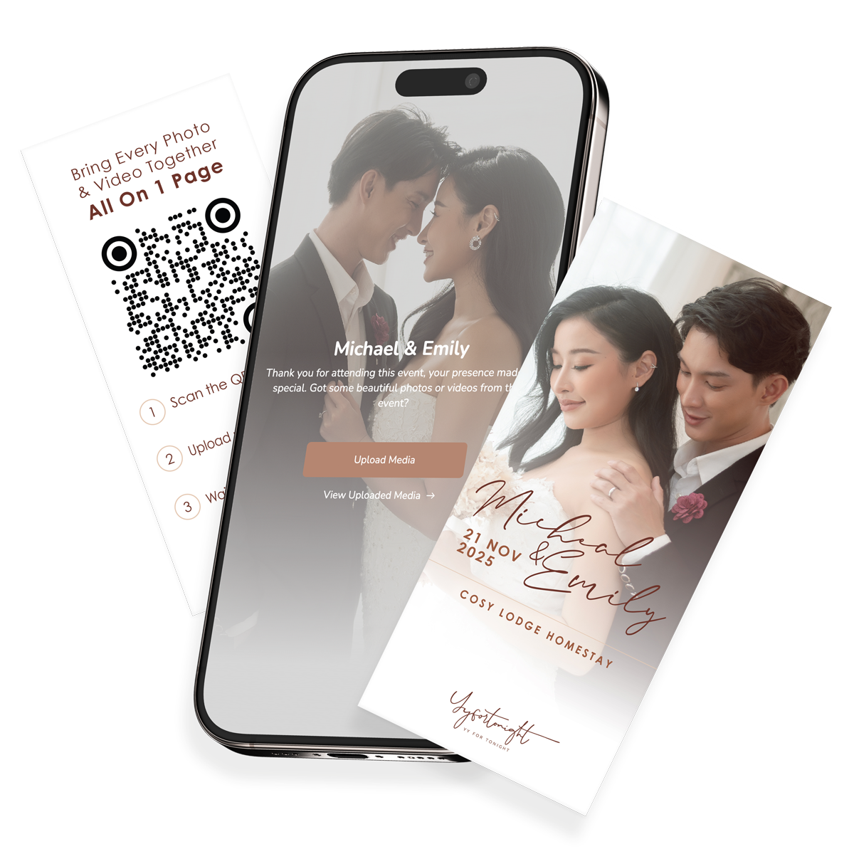 We’ll create a custom cover page and QR card that match your wedding or event theme, giving your guests a unified visual experience.