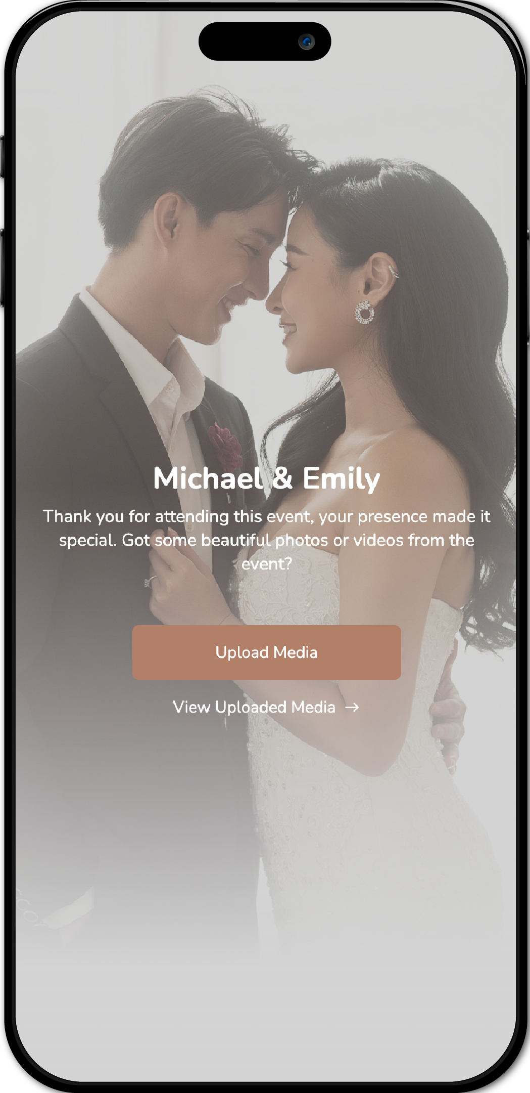 Guests can upload photos or videos instantly with just one tap — no app, no login, no hassle.
